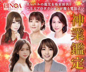 | 【リノア】 | 日本最大級の占いプロダクション「CSEプロダクション」が運営 | 最大10,000円相当無料の特典! | 先払いで、更に最大10,000円分の特典が加算 |